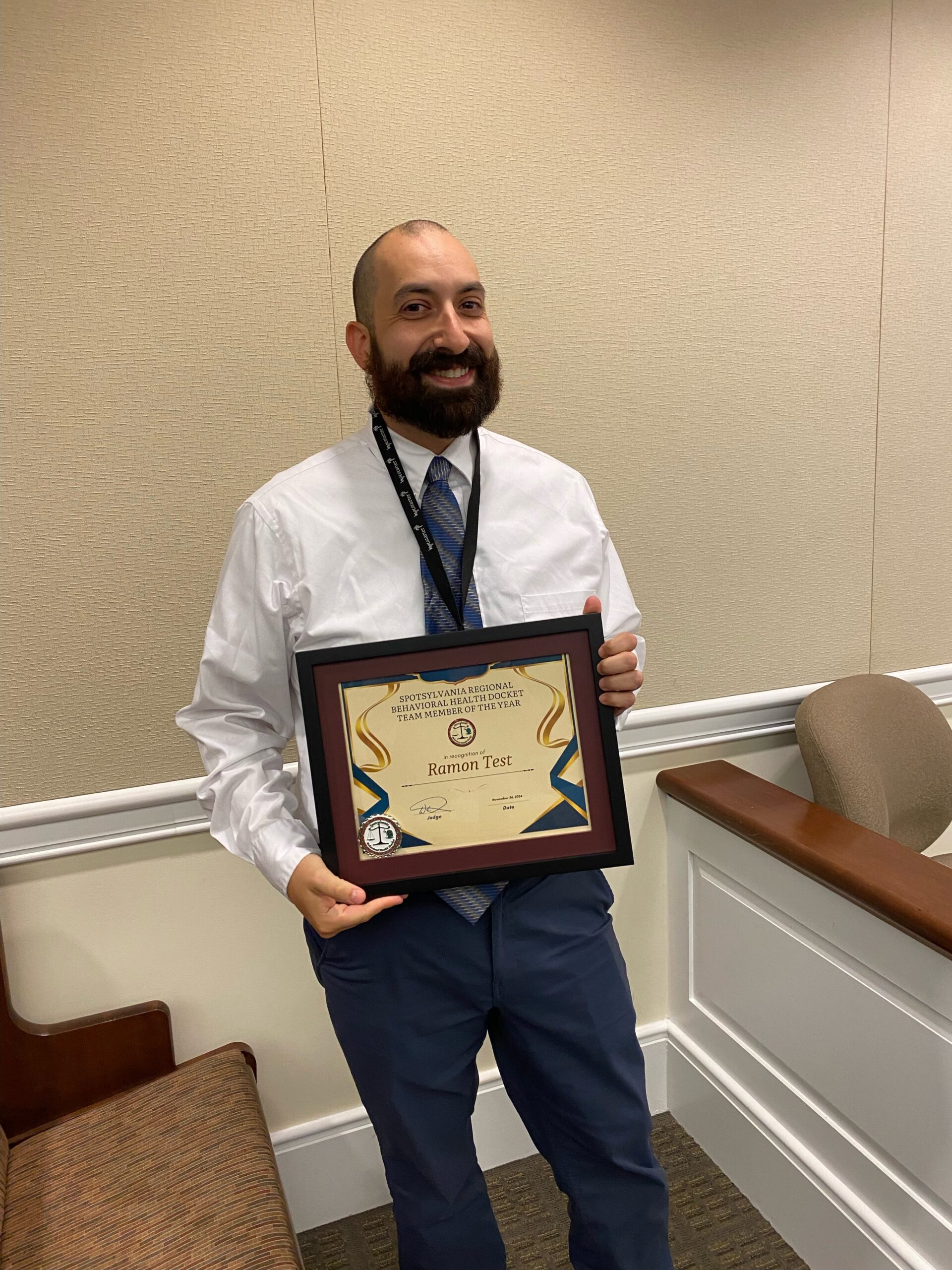 Ramon Test, mental health case manager, was named Team Member of 2024 for the Spotsylvania Regional Behavioral Health Docket, which offers treatment over incarceration.